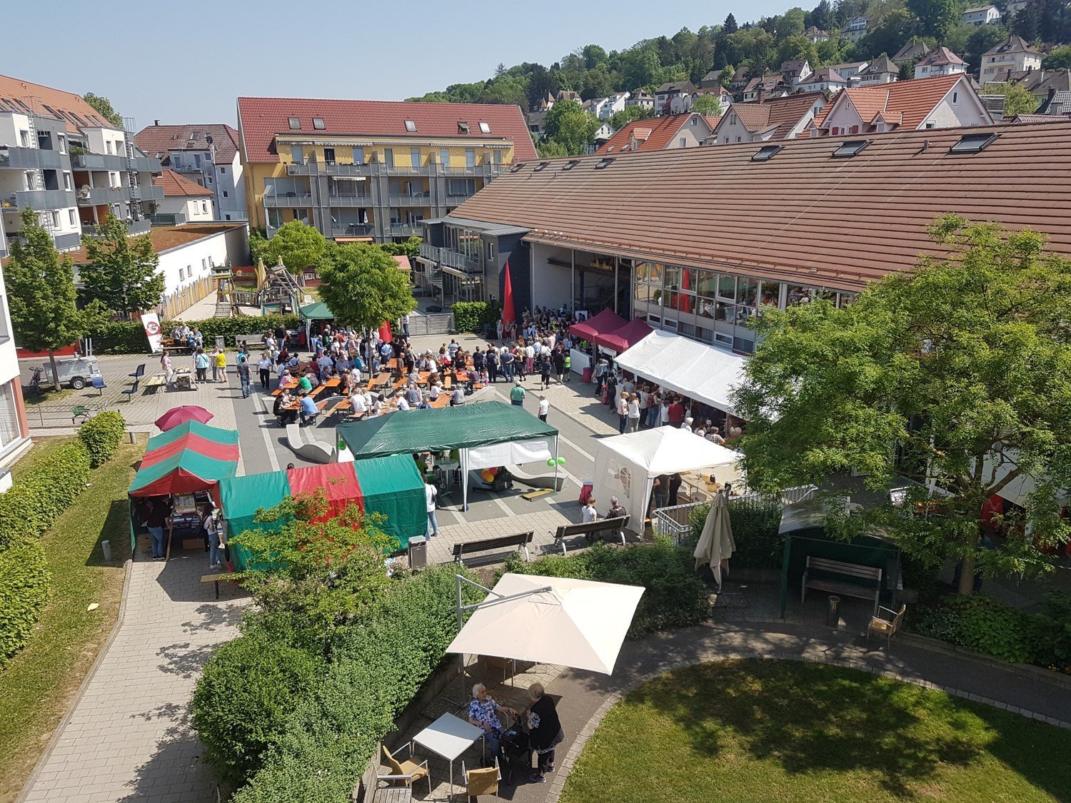 Das öffentliche Café ist ein Ort der Begegnung und ein wichtiger Dreh- und Angelpunkt für die Einbindung des Altenpflegeheims in den Stadtteil Pliensauvorstadt. Am Nachmittag servieren Ihnen ehrenamtliche Mitarbeiter und Mitarbeiterinnen Kaffee aus nachhaltiger Entwicklung und fairem Handel. Der Kuchen kommt aus der Bäckerei in der Nachbarschaft und der Wein vom örtlichen Winzer. Die Ehrenamtlichen bringen eine besonders lebendige Atmosphäre in das Haus und stellen Verbindungen zwischen dem Pflegeheim, dem Mehrgenerationenhaus und dem Gemeinwesen her. Das Café ist für alle Bürgerinnen und Bürger aus dem Stadtteil geöffnet.