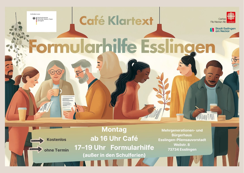 Seit Januar 2026 bieten Engagierte ihre Hilfe beim Ausfüllen von Formularen an. Jeden Montag außerhalb der Ferien von 17 - 19 Uhr. Ab 16 Uhr gibt es Kaffee und Tee im Café Klartext.